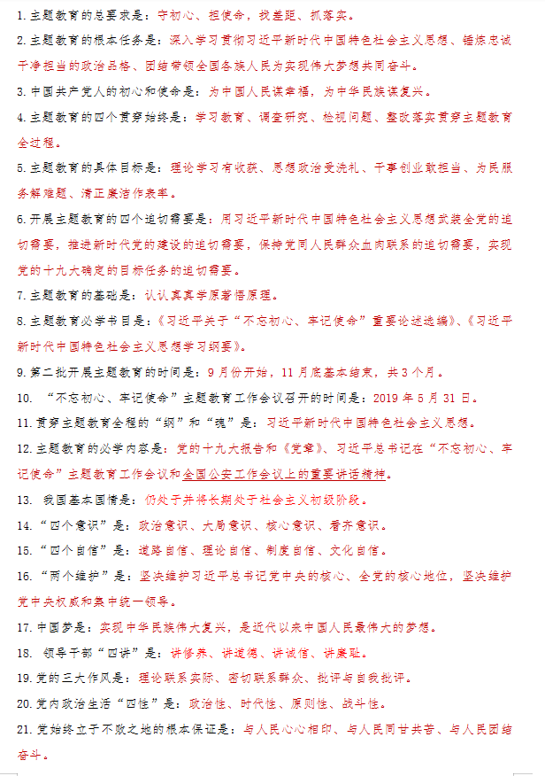 本月黨支部書(shū)記要求各位黨員做“不忘初心、牢記使命”主題教育應(yīng)知應(yīng)會(huì)測(cè)試題。
